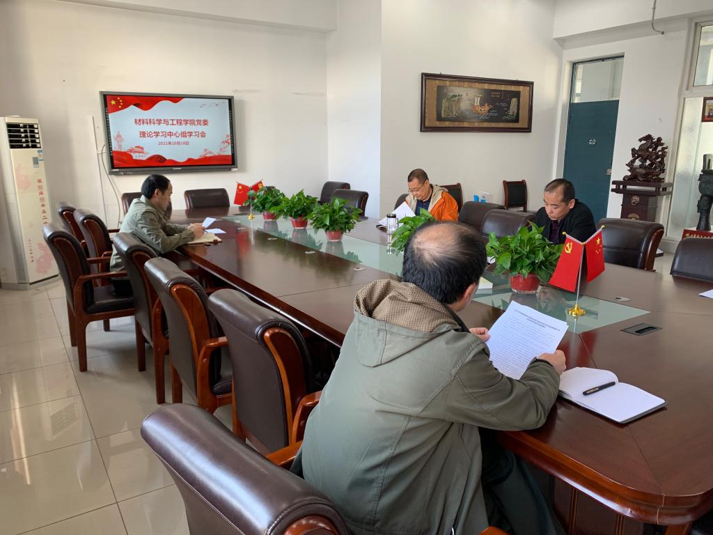 10月18日上午,材料科学与工程学院党委理论学习中心组召开学习会,党委书记白朴存主持,学院全体党委委员参会。