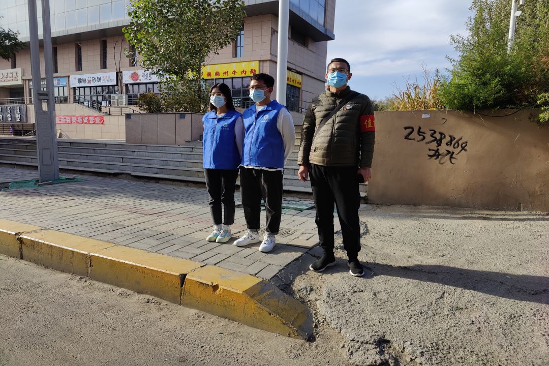师生志愿者们分别在学校北门、小吃街等位置站岗,保证了同学们“宿舍-学校”两点一线的行动路线,最大程度上杜绝同学们与外界的接触,从而保障了大家的安全。他们引导着来往的同学们,提醒进入学校的同学们出示校园卡和健康码。秋风萧瑟中,坚毅忙碌的身影仿佛守护学校安全的战士。