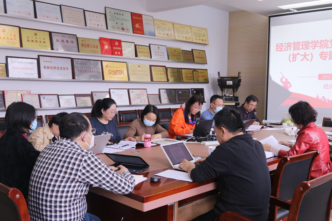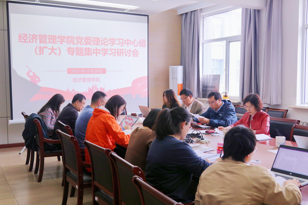 10月28日,经济管理学院党委在新城校区主楼317会议室召开理论学习中心组(扩大)专题集中学习研讨会。学院党委委员、各党支部书记参加,学院党委书记任慧主持。