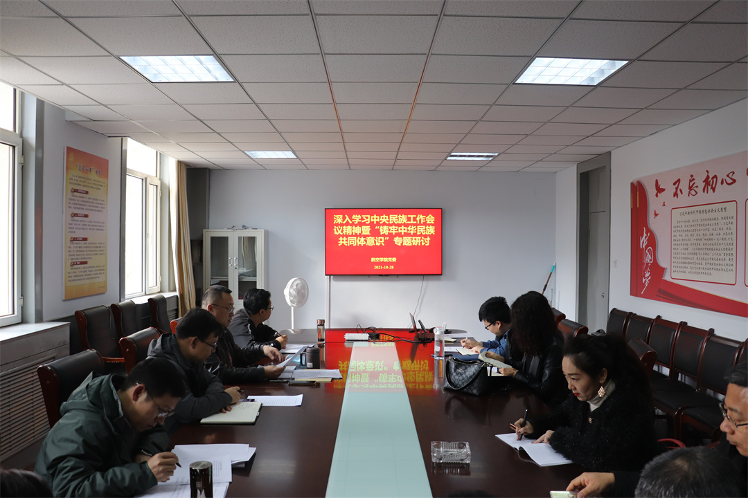 10月28日,航空学院组织开展深入学习中央民族工作会议精神暨“铸牢中华民族共同体意识”专题研讨。学院党委中心组成员,各党支部书记,各科室负责人和系主任参加,学院党委书记郭凌峰主持会议。