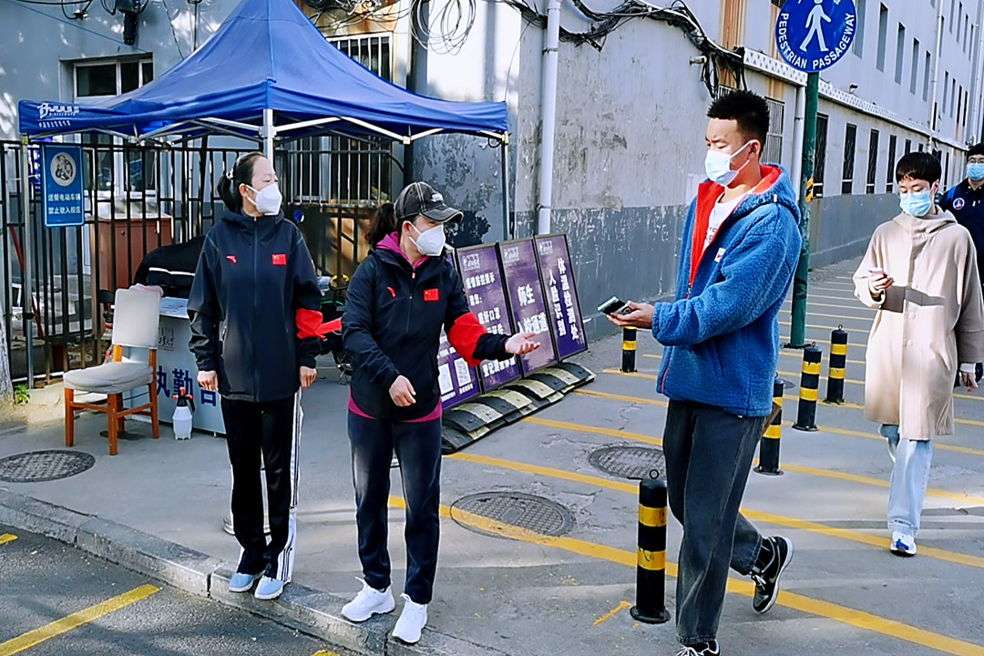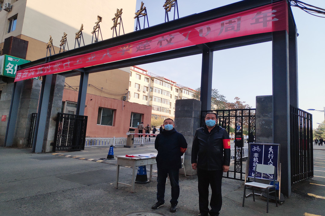 严守——两个教学部党员领导干部、青年党员、发展对象纷纷主动申请,积极参与疫情防控轮守值班,做好健康码查验、车辆排查、人员流向引导等工作。