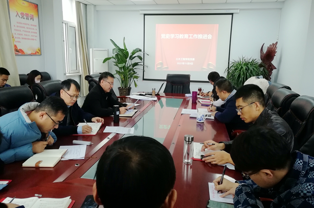 11月9日下午,土木工程学院党委在新城校区土木馆C座333会议室召开党史学习教育工作推进会,深入学习贯彻习近平总书记近期系列重要讲话精神,扎实推进党史学习教育走深走实。全体党支部书记参加会议。院党委书记那音巴雅尔主持会议。