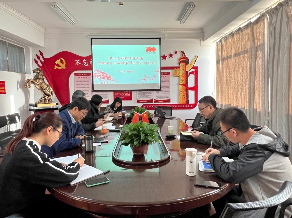 11月25日,轻工与纺织学院党委召开党的十九届六中全会专题学习研讨会。学院党委委员参会,学校党史学习教育督查指导组成员列席指导,学院党委书记张翔主持会议。