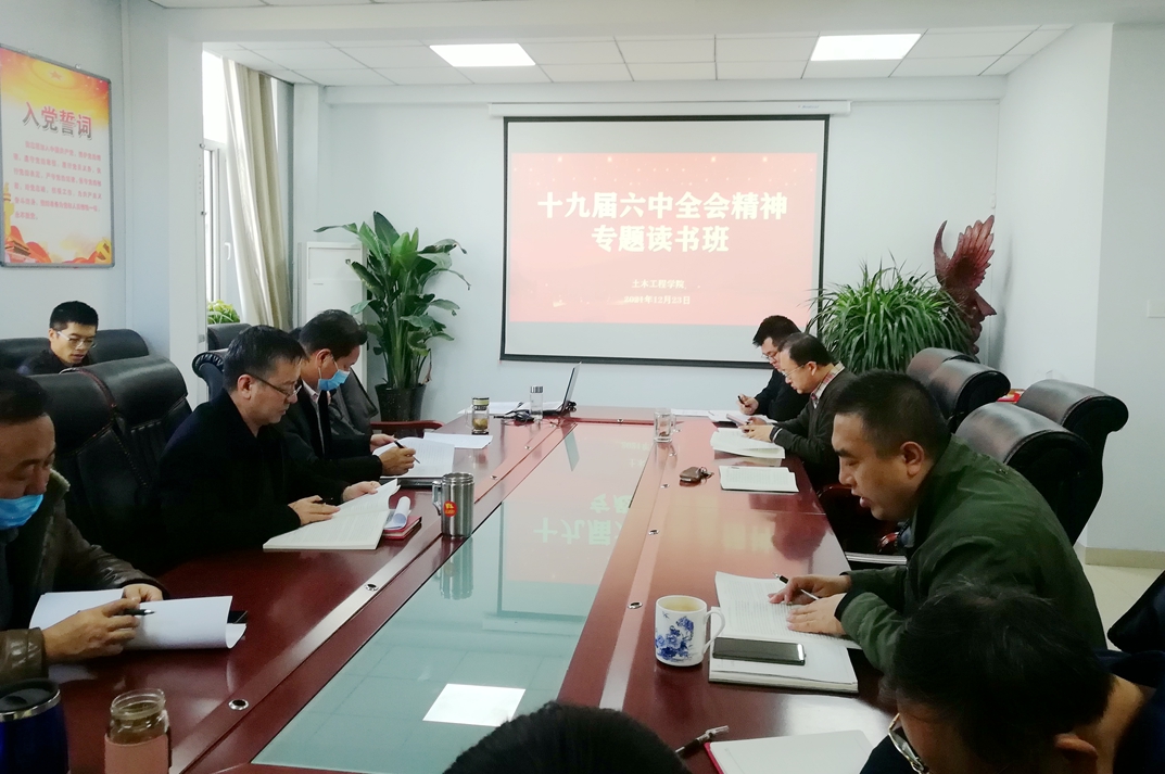 为深入学习宣传贯彻党的十九届六中全会精神,努力把学习成效转化为推动学院高质量发展的动力,12月23日下午,土木工程学院党委在新城校区土木馆C333组织开展党史学习教育专题读书班暨党的十九届六中全会精神专题学习会。院领导、党委委员、支部书记、科级干部25人参加学习。院党委书记那音巴雅尔主持。