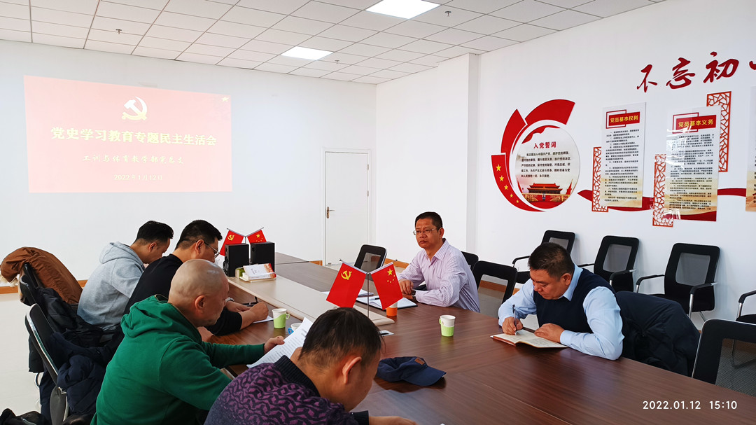 1月12日,工训与体育教学部党总支召开党史学习教育专题民主生活会,党总支书记安雷主持,全体党总支委员参加,督导组成员车广东、李云飞同志到会指导。