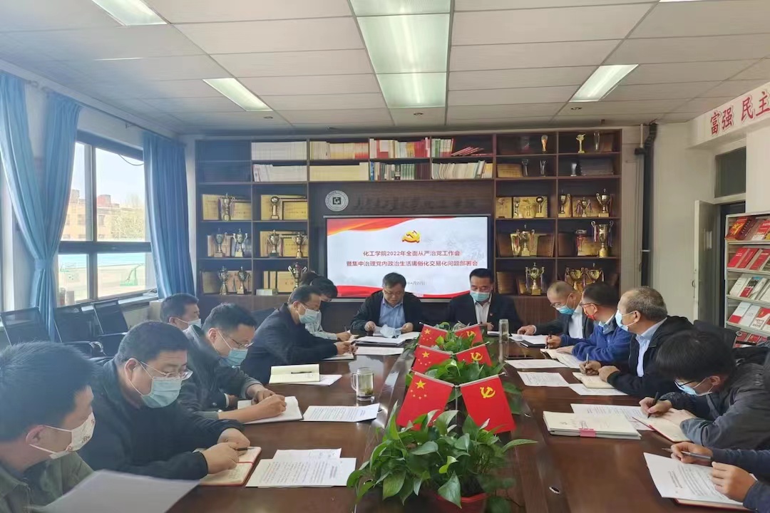 4月22日下午,化工学院党委召开2022年全面从严治党工作会暨集中治理党内政治生活庸俗化交易化问题部署会。学院党委委员、各教工党支部书记、副科级以上党员干部参加,学院党委副书记、院长白杰主持会议。