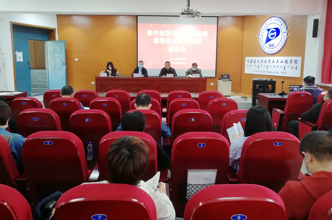 4月24日下午,按照《球王会体育官方网站党委集中治理党内政治生活庸俗化交易化问题工作方案》的精神,土木工程学院党委组织召开集中治理党内政治生活庸俗化交易化问题动员部署会。会议通过线上线下相结合的形式进行。学院处级领导干部、科级干部(含支部书记)、副高以上职称党员教师代表在新城校区土木馆B219现场参会,其他党员教师线上参会。副书记、副院长陈辉主持会议。