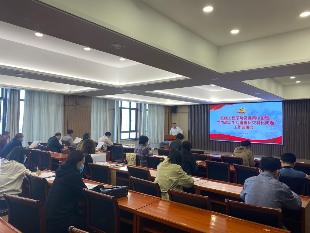 根据《球王会体育官方网站党委集中治理党内政治生活庸俗化交易化问题工作方案》要求,4月25日下午,机械工程学院党委召开集中治理党内政治生活庸俗化交易化问题工作部署会,学院党委书记车广东主持会议,学院党委委员、党支部书记、科级党员干部参加会议。