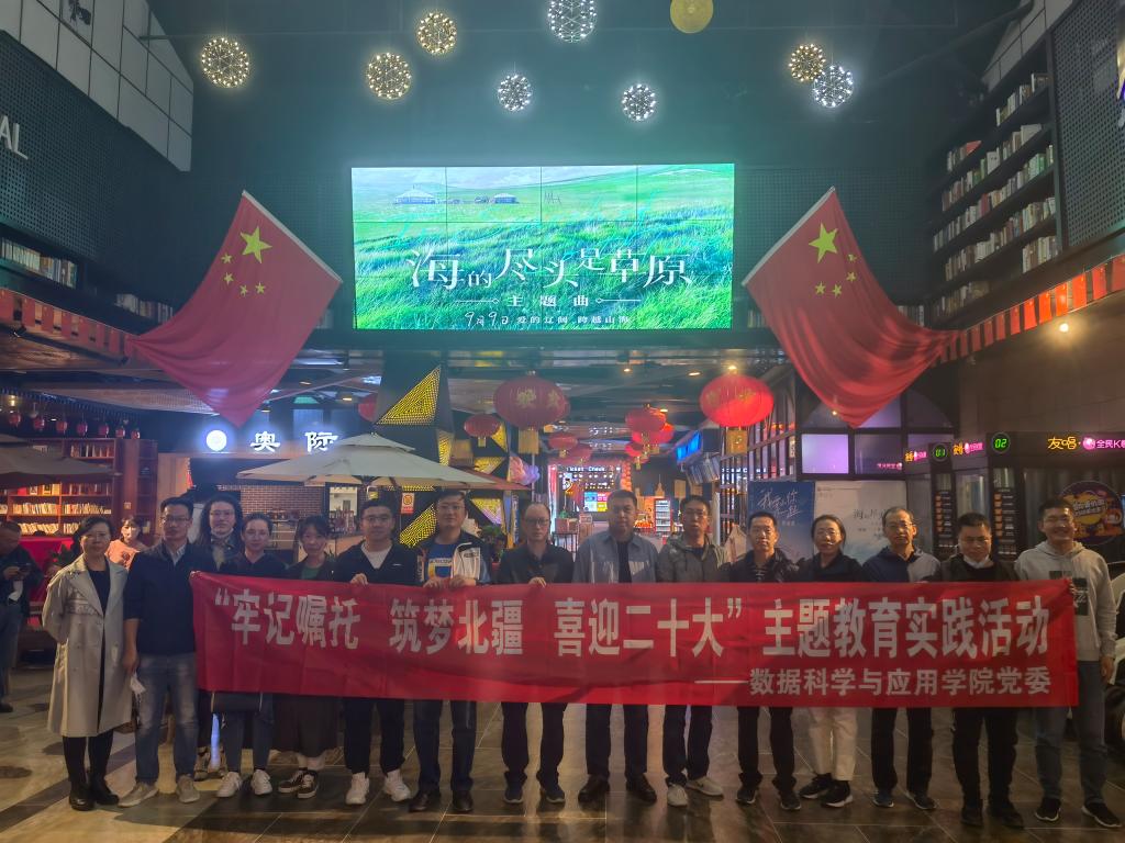 为扎实开展“民族团结进步活动月”宣传教育活动,进一步铸牢中华民族共同体意识,推进民族团结进步创建工作走深走实,9月23日下午,数据科学与应用学院党委组织开展“牢记嘱托  筑梦北疆  喜迎二十大”主题教育实践活动,组织全院教职工观看民族团结进步影片《海的尽头是草原》。