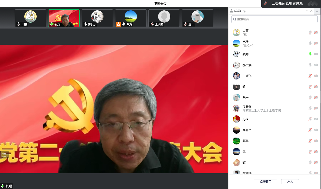 11月19日晚,土木工程学院党委线上召开理论学习中心组第10次(扩大)学习会,学院党委书记张翔主持会议,学院党委委员、各党支部书记参加会议。