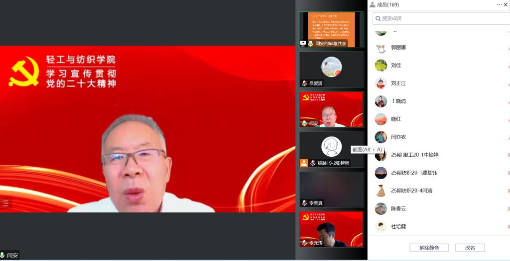 轻工与纺织学院党委邀请闫安教授作学习宣传贯彻党的二十大精神专题宣讲报告