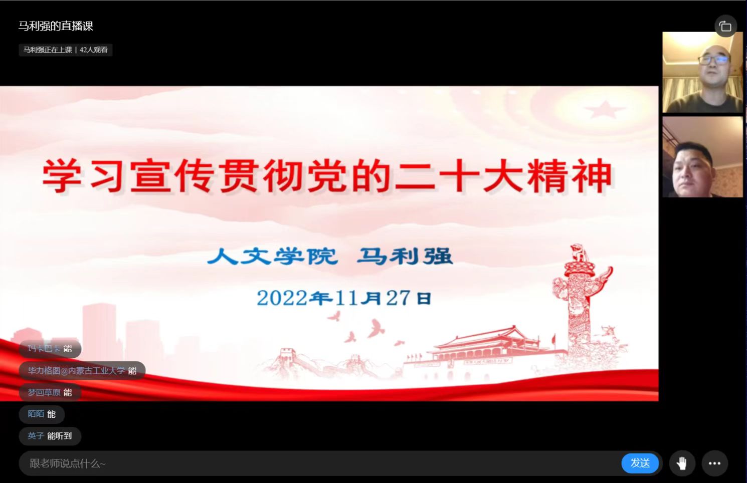 11月27日至12月1日,人文学院举办学习贯彻党的二十大精神专题读书班。学院党委书记马利强,党委副书记、院长郝晓燕,党委副书记、副院长武新春,学校党的二十大精神宣讲团成员、马克思主义学院马立国教授分别作主题宣讲。学院全体教师、学生党员、发展对象和入党积极分子参加。