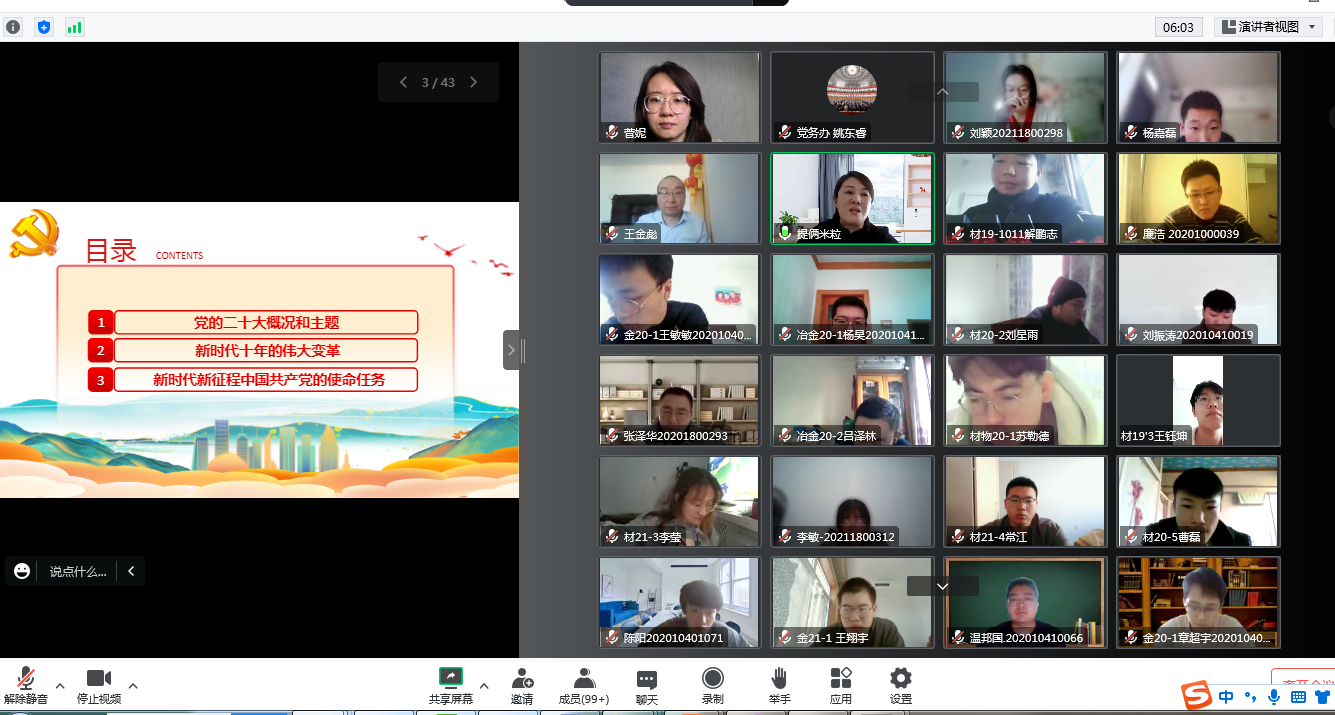 此次宣讲报告脉络清晰、重点突出、深入浅出、内涵丰富、思想深刻,是一场启发思维、理清思路、鼓舞斗志、针对性强的辅导报告,对同学们深刻理解、准确把握党的二十大精神具有重要指导意义。希望材料学子在党的二十大精神的指引下,牢记嘱托铭初心,爱国奋斗勇担当,在实现民族复兴伟大征程中贡献更多智慧和力量。