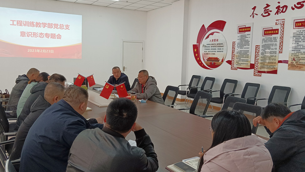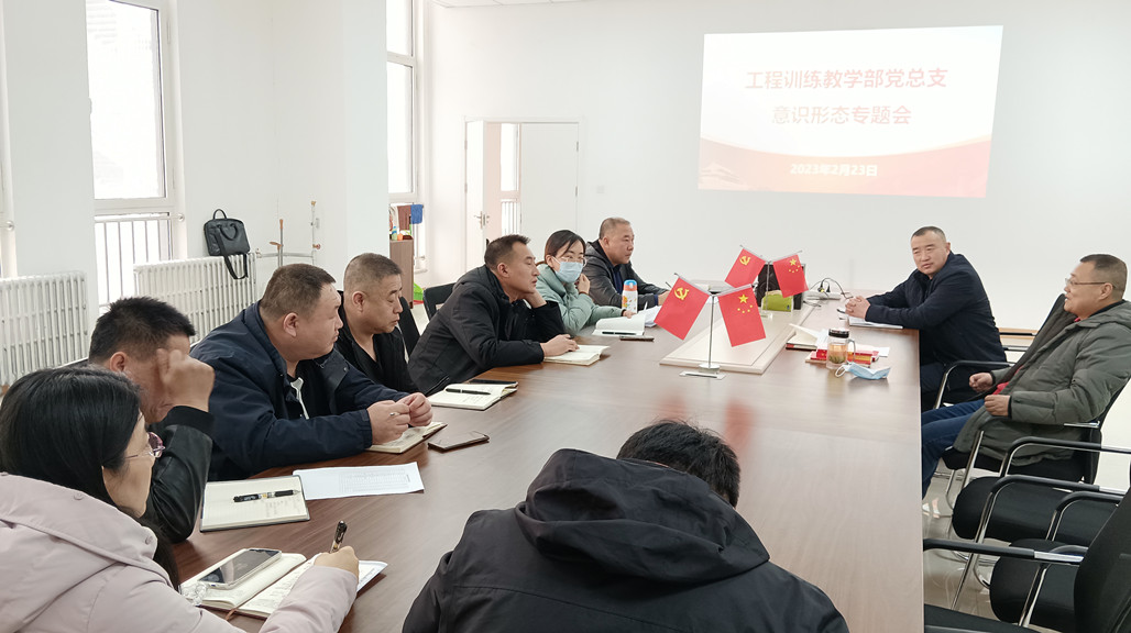 2月23日,工程训练教学部党总支召开意识形态专题会,党总支书记、教学部主任白朴存主持会议,党总支委员、党支部书记、科级干部、分会主席参加。