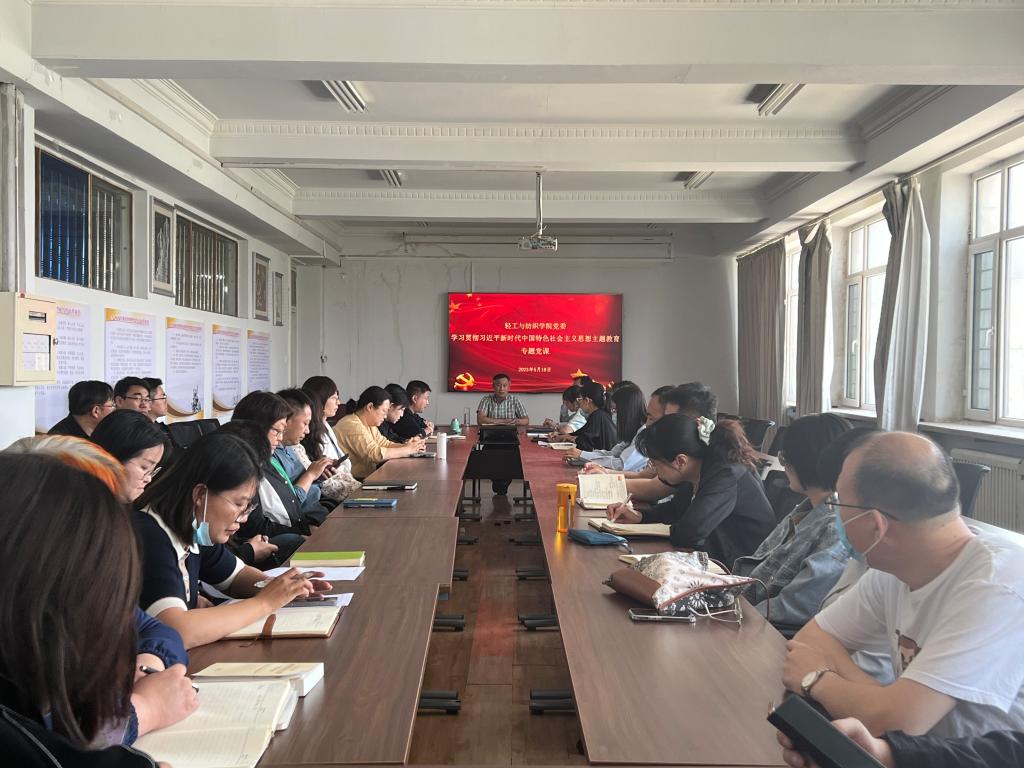 5月18日,轻工与纺织学院党委书记李元涛以“围绕自治区‘两件大事’,落实学校‘九大行动’体现学院贡献度”为题,向全体教师讲授主题教育专题党课。