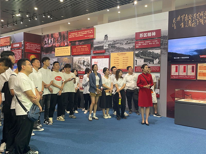 全体人员参观各展区深刻感悟中国共产党在革命战争时期、社会主义建设时期、改革开放时期和中国特色社会主义新时代形成的伟大建党精神