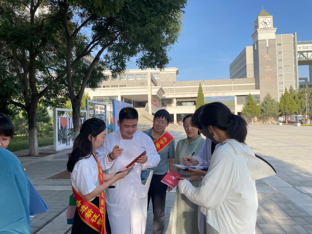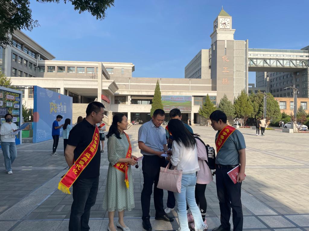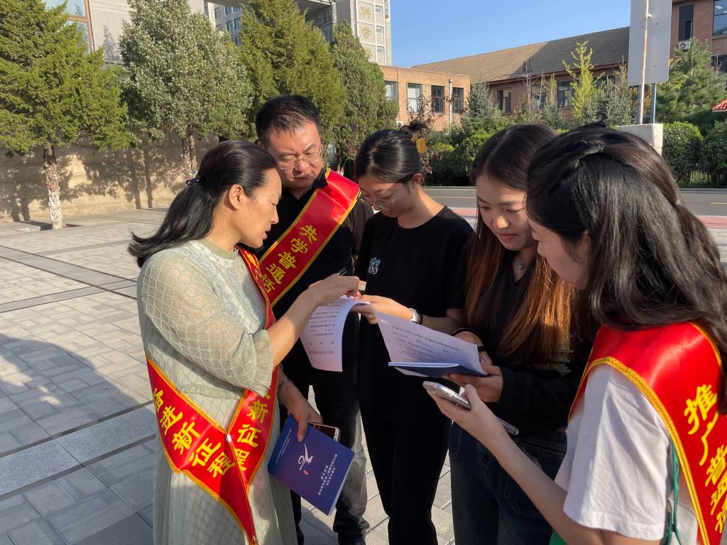 党员们身披印有“共学普通话 迈向现代化”“推广普通话 奋进新征程”的绶带,向往来学生发放《球王会体育官方网站推广普通话有奖知识问答》测试题,为获得满分的学生发放纪念品。同时,调研学生使用普通话和参与全国普通话水平测试情况。党员们还向学生阐释推广使用国家通用语言文字和铸牢中华民族共同体意识的关系,号召大家积极参与推广普通话,增进各民族学生交往交流交融,在学业上共同进步。