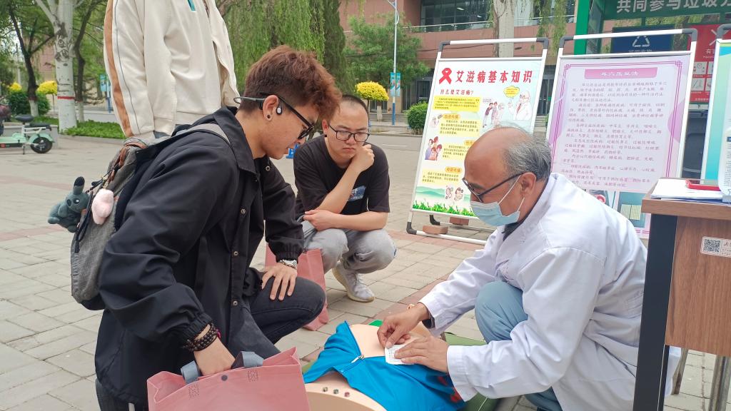 活动期间,校医院医护人员现场发放健康宣传材料,并为球王会师生提供血压、血糖、血型检测,中医穴位耳贴、头疗体验健康宣教等义务诊疗服务,得到师生一致好评。活动现场设置急救技能体验互动区,师生可以进行心肺复苏术、创伤包扎等实操体验,进一步提升医疗急救技能