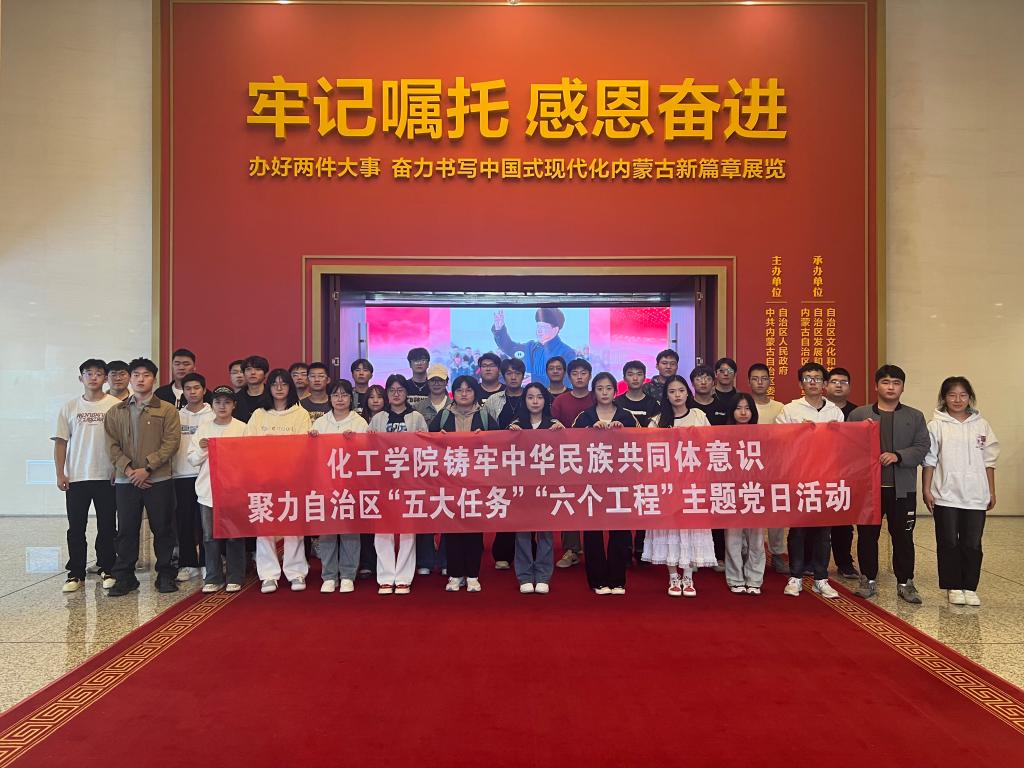 活动期间,各教工党支部围绕自治区“五大任务”“六个工程”“铸牢中华民族共同体意识”“推动学校晋位升级高质量发展”等主题进行集中学习研讨;化学工程与工艺、非金属等专业学生党支部组织党员、党员发展对象赴内蒙古展览馆等地参观学习;7个学生党支部利用课余时间在新城校区北区公寓学生社区、学院党员活动室开展专题学习研讨。