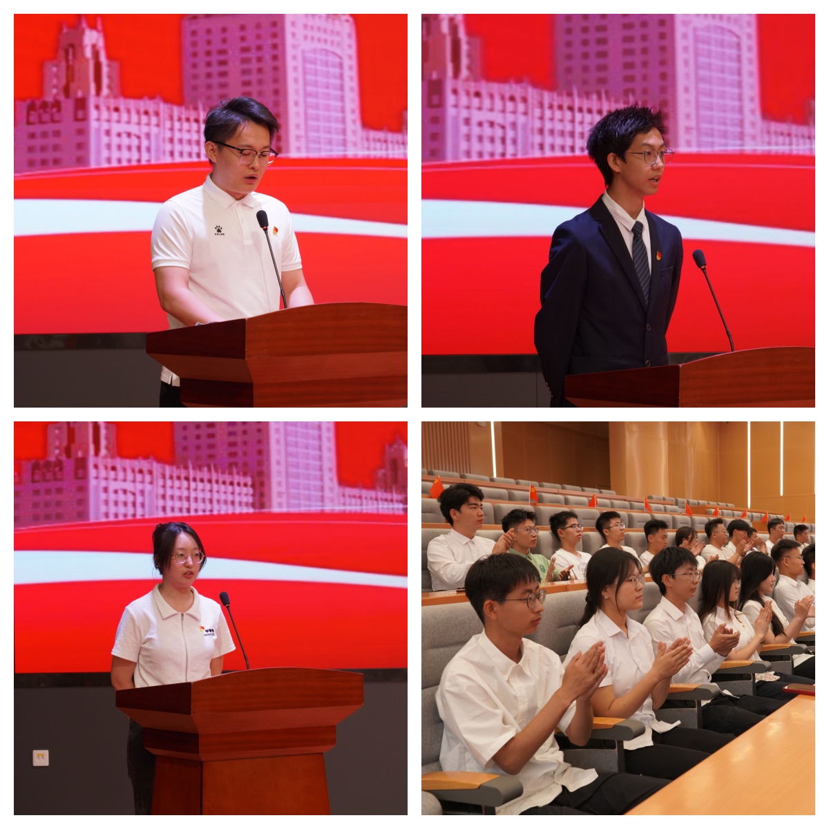 大会首先举行新党员入党宣誓仪式,齐咏生带领全体党员面向党旗宣誓,教师党员和部分毕业生党员代表为新党员佩戴党员徽章彭建兵为全体毕业生党员讲授离校前的“最后一节党课”学院郑明远,冀博宇、谢敏分别作新党员、毕业生党员代表发言