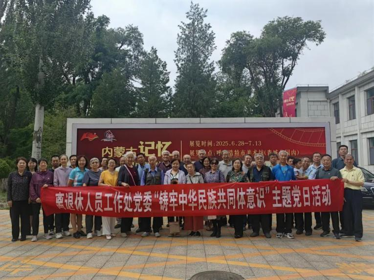 7月3日,离退休人员工作处党委组织离退休党员40余人前往呼和浩特市美术馆,参观由内蒙古日报社策划主办的AI光影跨时空 风华岁月耀北疆“内蒙古记忆”纪实图片展