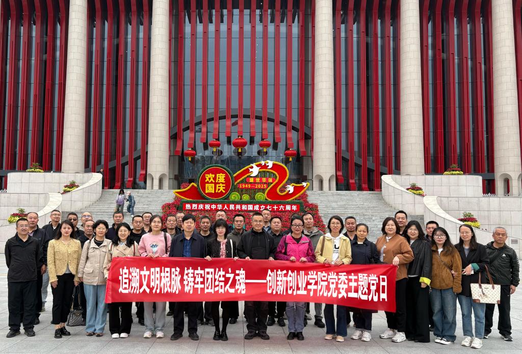 10月16日,创新创业学院党委组织全体教师赴内蒙古博物院,开展“追溯文明根脉 铸牢团结之魂”主题党日活动。教师们沉浸式参观“解放之路”“远古世界”“文脉遗珍”三大展区,在文化浸润中进一步强化使命担当,凝聚育人共识。