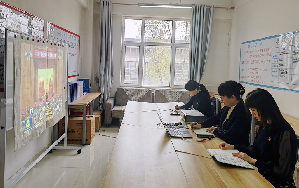 与会同志共同学习习近平总书记在学习贯彻习近平新时代中国特色社会主义思想主题教育工作会议上的重要讲话精神。