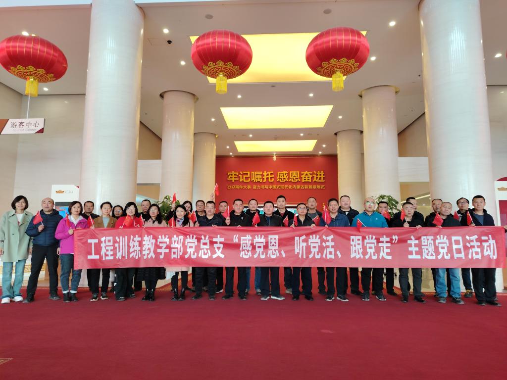 为铸牢中华民族共同体意识,深入学习贯彻落实习近平总书记对内蒙古的重要指示精神3月16日上午,工程训练教学部党总支组织全体教职工赴内蒙古自治区展览馆参观“牢记嘱托 感恩奋进——办好两件大事 奋力书写中国式现代化内蒙古新篇章”展览。