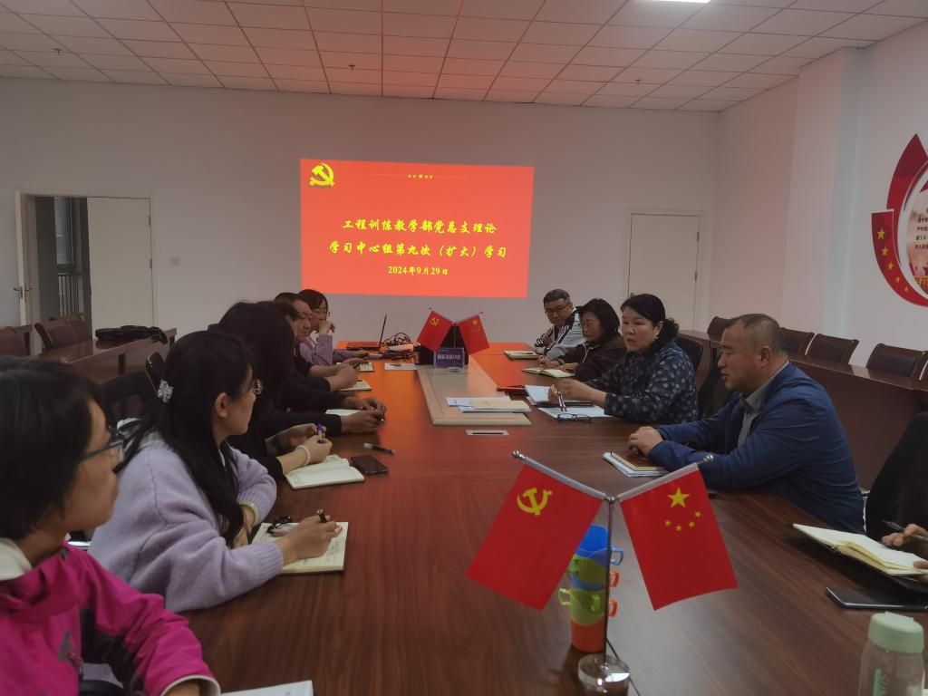 9月29日,工程训练教学部党总支召开中心组(扩大)学习会,党总支书记陈红霞同志主持会议,全体教师参加。
