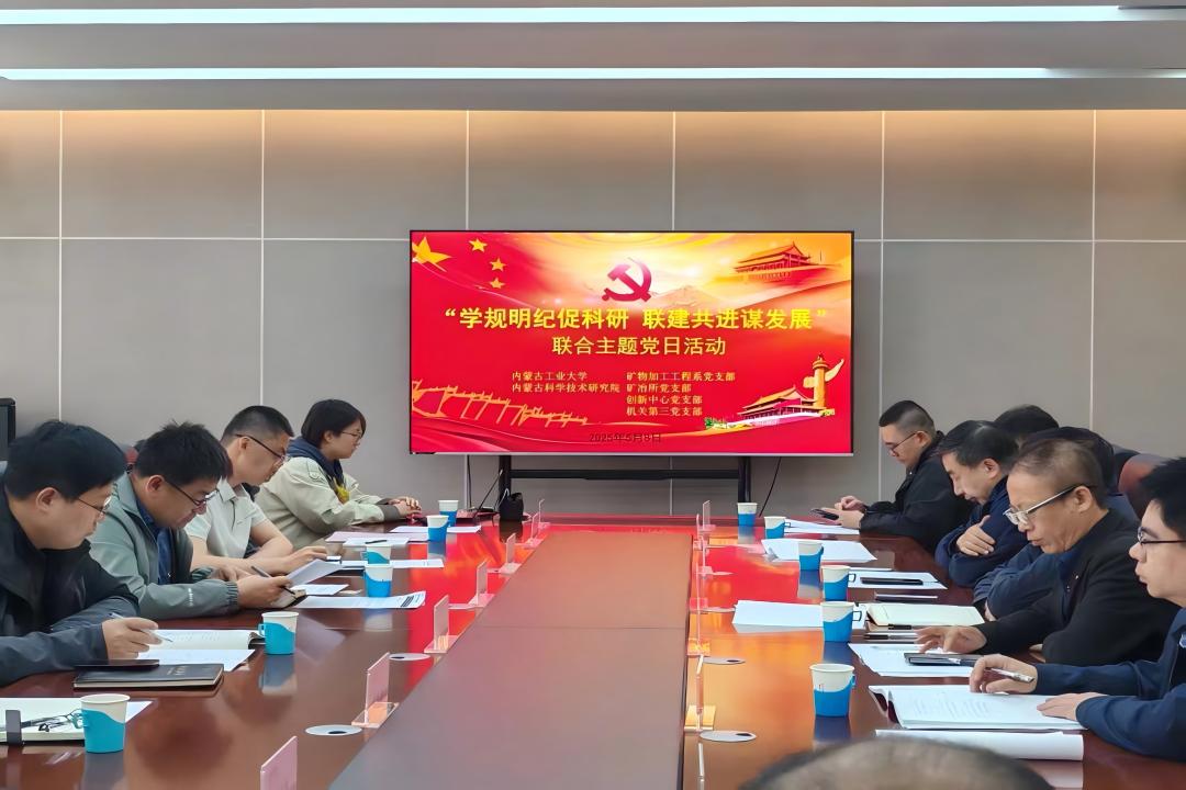 5月8日,资源与环境工程学院矿物加工工程系党支部联合内蒙古科学技术研究院矿产资源利用与冶金研究所党支部、创新中心党支部、机关第三党支部在新城校区明德楼开展“学规明纪促科研 联建共进谋发展”联合主题党日活动双方支部党员参加
