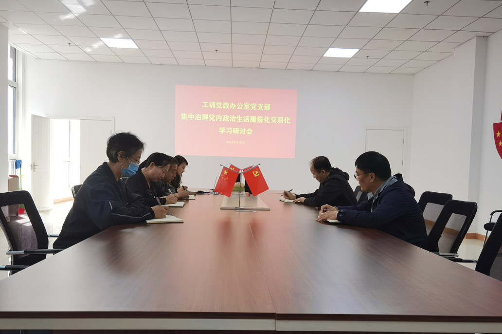 党支部书记带头谈个人学习心得,其他党员同志分别结合个人学习情况,逐一谈认识、谈体会。大家普遍认为,全面开展集中治理党内政治生活庸俗化交易化问题是忠诚拥护“两个确立”、坚决做到“两个维护”的重要举措,是落实全面从严治党的重要保障。各党支部将按照党总支统一要求,高起点、高标准开展自查自纠和警示教育,把严肃党内政治生活抓在经常、融入日常,切实做到心有所戒、行有所止,以健康的党内政治生活为党的二十大胜利召开营造风清气正的良好环境。