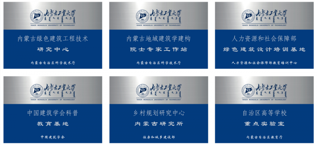 目前建设有绿色建筑自治区高等学校重点实验室、内蒙古绿色建筑工程技术研究中心、内蒙古地域建筑学建构院士专家工作站、人力资源和社会保障部绿色建筑设计培训基地、内蒙古自治区研究生联合培养基地、中国建筑学会科普教育基地、中国建筑学会绿色低碳科普基地、住房和城乡建设部乡村规划研究中心内蒙古研究所、中华民族视觉形象基地内蒙古工作站等省部级平台11个。