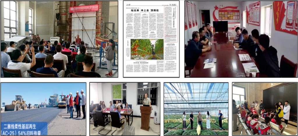 围绕厅局地方政府、行业企业、协会学会等需求,组织“科研团队+科技特派员”工作模式开展服务。受内蒙古住建厅、生态环境厅、乡村振兴局等委托完成多个调研报告,为决策提供依据;在全区建设“党员科技服务工作站”5个,深入各盟市旗县开展产业对接和技术服务;投身内蒙古大型场馆、地铁与城市快速路、新机场等重大工程,乡村振兴等民生工程,其中,“农村牧区脱贫攻坚危房鉴定改造”得到人民日报专项报道,“太阳能设施农业土壤跨季度储供热技术及产业化应用”成果入选“十四五”教育部高校科技助力乡村振兴示范项目30个典型案例,是全国入选的唯一土木类案例;编制《农村牧区居住建筑节能设计标准》等30余项国家、地方、行业标准;学科点牵头内蒙古土木工程学会、内蒙古勘察设计协会等行业组织,为内蒙古土建领域高质量发展贡献力量。